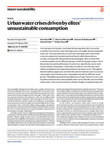 Urban water crises driven by elites’ unsustainable consumption.