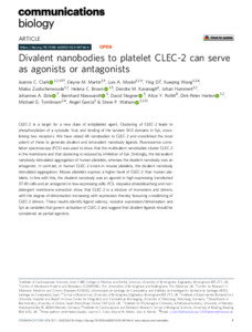 Divalent nanobodies to platelet CLEC-2 can serve as agonists or antagonists.