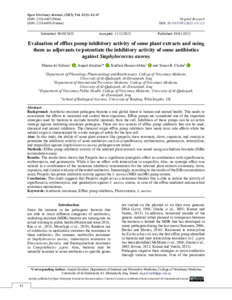 Evaluation of efflux pump inhibitory activity of some plant extracts and using them as adjuvants to potentiate the inhibitory activity of some antibiotics against Staphylococcus aureus