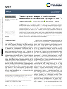 Thermodynamic analysis of the interaction between metal vacancies and hydrogen in bulk Cu.