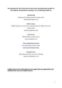 Investigating the role of data-driven innovation and information quality on the adoption of blockchain technology on crowdfunding platforms.