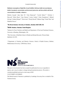 Sayegh, M., Qian Ni, Q., Ranawana, V., Raikos, V., Hayward, N. J., Hayes, H. E., Duncan, G., Cantlay, L., Farquharson, F., Solvang, M., Horgan, G. W., Louis, P., Russell, W. R., Clegg, M., Thies, F. and Neacsu, M. (2023) Habitual consumption of high-fibre bread fortified with bean hulls increased plasma indole-3-propionic concentration and decreased putrescine and deoxycholic acid faecal concentrations in healthy volunteers. British Journal of Nutrition, 130 (9). pp. 1521-1536. ISSN 0007-1145 doi: 10.1017/S0007114523000491