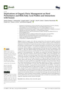 Implications of organic dairy management on herd performance and milk fatty acid profiles and interactions with season