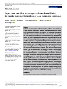 Supervised machine learning to estimate instabilities in chaotic systems: estimation of local Lyapunov exponents.