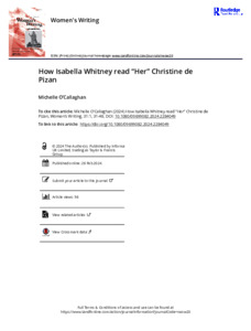 O'Callaghan, M. ORCID: https://orcid.org/0000-0001-6084-0122 (2024) How Isabella Whitney read “Her” Christine de Pizan. Women's Writing, 31 (1). pp. 31-48. ISSN 1747-5848 doi: 10.1080/09699082.2024.2284049