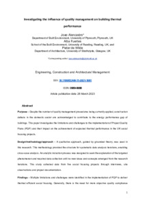 Alencastro, J., Fuertes, A. ORCID: https://orcid.org/0000-0002-6224-1489 and De Wilde, P. (2024) Investigating the influence of quality management on building thermal performance. Engineering, Construction and Architectural Management, 31 (8). pp. 3356-3376. ISSN 1365-232X doi: 10.1108/ECAM-11-2021-1061