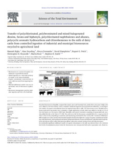 Rigby, H., Dowding, A., Fernandes, A., Humphries, D., Petch, R. G., Reynolds, C. K. ORCID: https://orcid.org/0000-0002-4152-1190, Rose, M. and Smith, S. R. (2023) Transfer of polychlorinated, brominated and mixed-halogenated dioxins, furans and biphenyls, polychlorinated naphthalenes and alkanes, polycyclic aromatic hydrocarbons and chlorobenzenes to the milk of dairy cattle from controlled ingestion of industrial and municipal bioresources recycled to agricultural land. Science of the Total Environment, 886. 163546. ISSN 1879-1026 doi: 10.1016/j.scitotenv.2023.163546