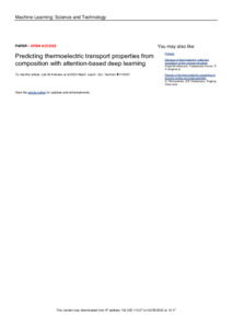 Antunes, L. M., Butler, K. T. and Grau-Crespo, R. ORCID: https://orcid.org/0000-0001-8845-1719 (2023) Predicting thermoelectric transport properties from composition with attention-based deep learning. Machine Learning: Science and Technology, 4 (1). 015037. ISSN 2632-2153 doi: 10.1088/2632-2153/acc4a9
