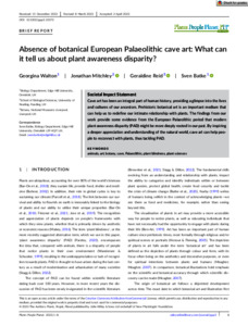 Walton, G., Mitchley, J. ORCID: https://orcid.org/0000-0002-0558-7547, Reid, G. ORCID: https://orcid.org/0000-0002-2477-2174 and Batke, S. ORCID: https://orcid.org/0000-0002-1938-3625 (2023) Absence of botanical European Palaeolithic cave art: what can it tell us about plant awareness disparity? Plants, People, Planet, 5 (5). pp. 690-697. ISSN 2572-2611 doi: 10.1002/ppp3.10373