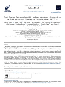 Conroy, A., Titley, H., Rivett, R., Feng, X. ORCID: https://orcid.org/0000-0003-4143-107X, Methven, J. ORCID: https://orcid.org/0000-0002-7636-6872, Hodges, K. ORCID: https://orcid.org/0000-0003-0894-229X, Brammer, A., Burton, A., Chakraborty, P., Chen, G., Cowan, L., Dunion, J. and Sarkar, A. (2023) Track forecast: operational capability and new techniques - summary from the Tenth International Workshop on Tropical Cyclones (IWTC-10). Tropical Cyclone Research and Review, 12 (1). pp. 64-80. ISSN 2225-6032 doi: 10.1016/j.tcrr.2023.05.002