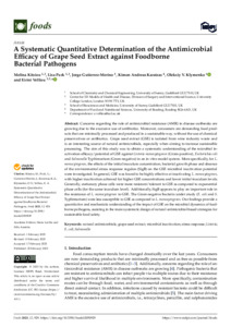 Kitsiou, M., Purk, L., Gutierrez-Merino, J., Karatzas, K.-A., Klymenko, O. V. and Velliou, E. (2023) A systematic quantitative determination of the antimicrobial efficacy of grape seed extract against foodborne bacterial pathogens. Foods, 12 (5). 929. ISSN 2304-8158 doi: 10.3390/foods12050929
