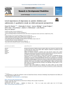 Lived experiences of depression in autistic children and adolescents: a qualitative study on child and parent perspectives.