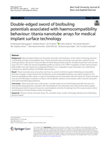 Double-edged sword of biofouling potentials associated with haemocompatibility behaviour: titania nanotube arrays for medical implant surface technology