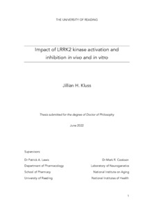 Kluss, J. H. (2022) Impact of LRRK2 kinase activation and inhibition in vivo and in vitro. PhD thesis, University of Reading. doi: 10.48683/1926.00112000
