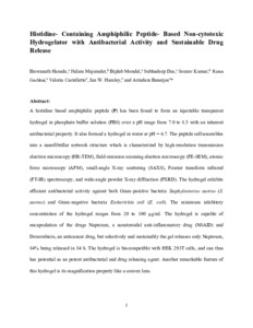 Histidine-containing amphiphilic peptide-based non-cytotoxic hydrogelator with antibacterial activity and sustainable drug release