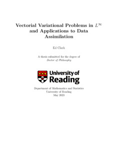 Clark, E. (2023) Vectorial variational problems in L∞ and applications to data assimilation. PhD thesis, University of Reading. doi: 10.48683/1926.00112108
