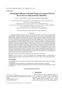 Anthropogenic influence on decadal changes of concurrent hot and dry events over China around the mid-1990s.