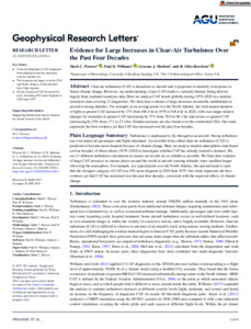 Evidence for large increases in clear‐air turbulence over the past four decades.