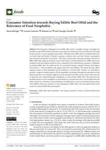 Enhancing the willingness to eat edible offal can be a valuable strategy to mitigate the greenhouse gas (GHG) emissions related to growing meat production and to provide food with high protein content to a growing global population. Although some edible offal is considered delicacies, we hardly find such foods in Western countries’ everyday diet, and their human consumption has decreased during the last decades. This study analyses the consumer purchase intention of BEEF edible offal using an extended version of the Theory of Planned Behaviour (TPB), where food neophobia and food disgust sensitivity play an essential role in determining consumers’ willingness to eat beef edible offal. An online survey was conducted among a sample of Italian adult regular meat eaters (n = 720), stratified by age, gender, education and residence. The results showed a direct negative impact of food neophobia on the intention to consume offal. Further, we were able to quantify a negative indirect impact of food neophobia on intention through the mediation of food disgust sensitivity and attitudes, subjective norms and perceived behavioural control, which all exert an essential role in determining the willingness to consume beef edible offal. We found that the mediated impact of food neophobia on the intention to consume beef offal is much higher than the direct impact. In conclusion, recommendations and implications, such as promoting cooking shows with celebrity chefs, new products or new packaging of edible offal, were developed based on the results to increase edible beef consumption.