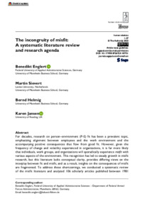 Englert, B., Sievert, M., Helmig, B. and Jansen, K. (2024) The incongruity of misfit: a systematic literature review and research agenda. Human Relations, 77 (9). pp. 1306-1332. ISSN 1741-282X doi: 10.1177/00187267231187751