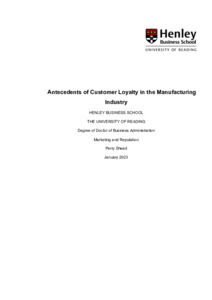 Shead, P. (2023) Antecedents of customer loyalty in the manufacturing industry. DBA thesis, University of Reading. doi: 10.48683/1926.00112342