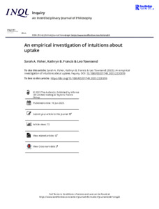 Fisher, S. A., Francis, K. B. and Townsend, L. (2023) An empirical investigation of intuitions about uptake. Inquiry. ISSN 1502-3923 doi: 10.1080/0020174x.2023.2220359