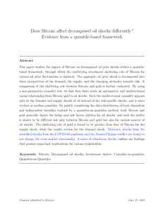 Does Bitcoin affect decomposed oil shocks differently? Evidence from a quantile-based framework.