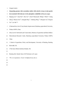 Uncontrolled Keywords Phosphorus efficiency, Genome-wide association study, BnaC09.PHT1;2, Brassica napus, BnaC07.ARF9, Selective sweep