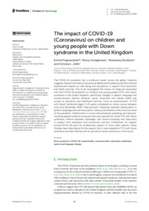 Pagnamenta, E. ORCID: https://orcid.org/0000-0002-4703-3163, Hodgkinson, P., Davidson, R. and Joffe, V. L. (2023) The impact of COVID-19 (Coronavirus) on children and young people with Down syndrome in the United Kingdom. Frontiers in Psychology, 14. 1175636. ISSN 1664-1078 doi: 10.3389/fpsyg.2023.1175636