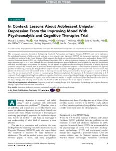 In Context: lessons about adolescent unipolar depression from the improving mood with psychoanalytic and cognitive therapies trial
