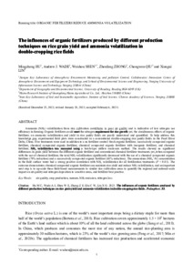 The influences of organic fertilizers produced by different production techniques on rice grain yield and ammonia volatilization in double-cropping rice fields.
