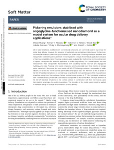 Pickering emulsions stabilised with oligoglycine-functionalised nanodiamond as a model system for ocular drug delivery applications.