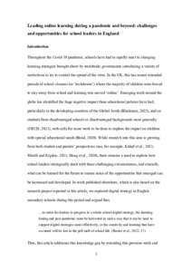 Leading online learning during a pandemic and beyond: challenges and opportunities for school leaders in England.