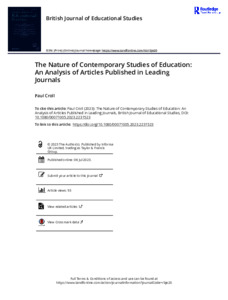 Croll, P. (2023) The nature of contemporary studies of education: an analysis of articles published in leading journals. British Journal of Educational Studies, 71 (5). pp. 537-547. ISSN 1467-8527 doi: 10.1080/00071005.2023.2231523