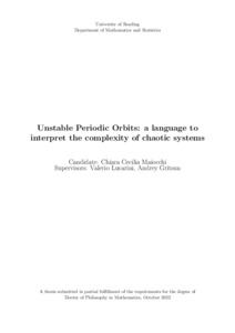 Maiocchi, C. C. (2023) Unstable Periodic Orbits: a language to interpret the complexity of chaotic systems. PhD thesis, University of Reading. doi: 10.48683/1926.00112633