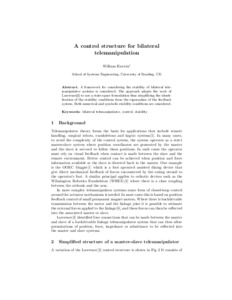 A framework for considering the stability of bilateral telemanipulator systems is considered. The approach adapts the work of Lawrence [3] to use a state-space formulation thus simplifying the identification of the stability conditions from the eigenvalues of the feedback system. Both numerical and symbolic stability conditions are considered.