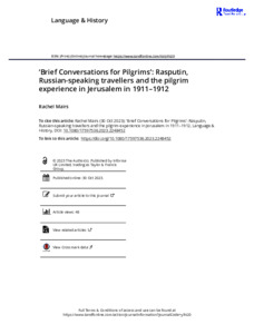 ‘Brief conversations for pilgrims’: Rasputin, Russian-speaking travellers and the pilgrim experience in Jerusalem in 1911-1912.