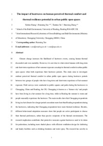 The impact of heatwaves on human perceived thermal comfort and thermal resilience potential in urban public open spaces.