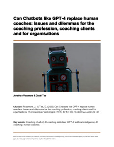 Can Chatbots like GPT-4 replace human coaches: Issues and dilemmas for the coaching profession, coaching clients and for organisations.