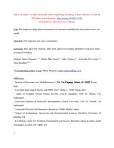 Magnani, M., Díaz-Sierra, R., Sweeney, L., Provenzale, A. and Baudena, M. (2023) Fire responses shape plant communities in a minimal model for fire ecosystems across the world. The American Naturalist. ISSN 1537-5323 doi: 10.1086/725391