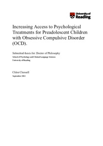 Chessell, C. (2023) Increasing access to psychological treatments for preadolescent children with Obsessive Compulsive Disorder (OCD). PhD thesis, University of Reading. doi: 10.48683/1926.00112903