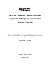 Falshaw, E. R. (2023) One-to-one Chromebook technology and student engagement in the independent secondary school classroom: a case study. EdD thesis, University of Reading. doi: 10.48683/1926.00112904