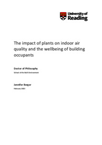 Berger, J. (2023) The impact of plants on indoor air quality and the wellbeing of building occupants. PhD thesis, University of Reading. doi: 10.48683/1926.00112919