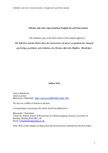 Ever since the different aspects of self were proposed by William James over a century ago, self-representation has remained a focus of empirical and theoretical interest. In this chapter, we focus on Jamesian ‘bodily self’, or physical self-representation. We describe a set of studies on the representation of self-face and self-voice, where participants were explicitly asked to label different morphed stimuli as ‘self’ or ‘other’. Across studies in two cultures, we note that the boundary for self-other judgement is significantly different between face and voice stimuli. Beyond testing the cultural generalisability of these results, we note the impact of autism-related symptomatic variation on self-face and self-voice processing. Here too, we see a culturally generalisable pattern that demonstrates a more distinct self-representation in individuals with high autistic traits, specifically for voice stimuli. The chapter concludes by proposing two competing theoretical models to explain these findings and pointing to future directions.
