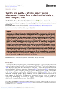 Quantity and quality of physical activity during adolescence: evidence from a mixed-method study in rural Telangana, India.