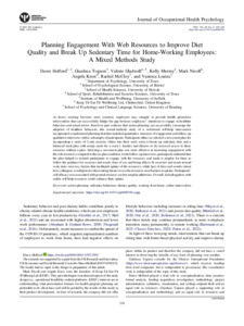 Planning engagement with web resources to improve diet quality and break up sedentary time for home-working employees: a mixed methods study.