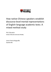 Wagstaffe, J. P. (2022) How native-Chinese speakers establish discourse-level mental representations of English-language academic texts: A mixed method study. PhD thesis, University of Reading. doi: 10.48683/1926.00113038