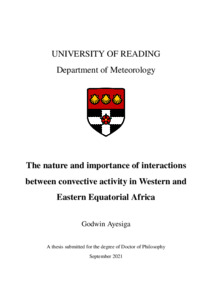 Ayesiga, G. (2021) The nature and importance of interactions between convective activity in Western and Eastern Equatorial Africa. PhD thesis, University of Reading. doi: 10.48683/1926.00113044