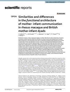 Sclafani, V., De Pascalis, L., Bozicevic, L., Sepe, A., Ferrari, P. F. and Murray, L. (2023) Similarities and differences in the functional architecture of mother- infant communication in rhesus macaque and British mother-infant dyads. Scientific Reports, 13. 13164. ISSN 2045-2322 doi: 10.1038/s41598-023-39623-3