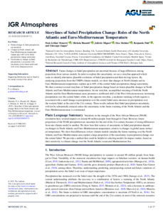Monerie, P.-A. ORCID: https://orcid.org/0000-0002-5304-9559, Biasutti, M., Mignot, J., Mohino, E., Pohl, B. and Zappa, G. (2023) Storylines of Sahel precipitation change: roles of the North Atlantic and Euro-Mediterranean temperature. JGR Atmospheres, 128 (16). e2023JD038712. ISSN 2169-8996 doi: 10.1029/2023JD038712